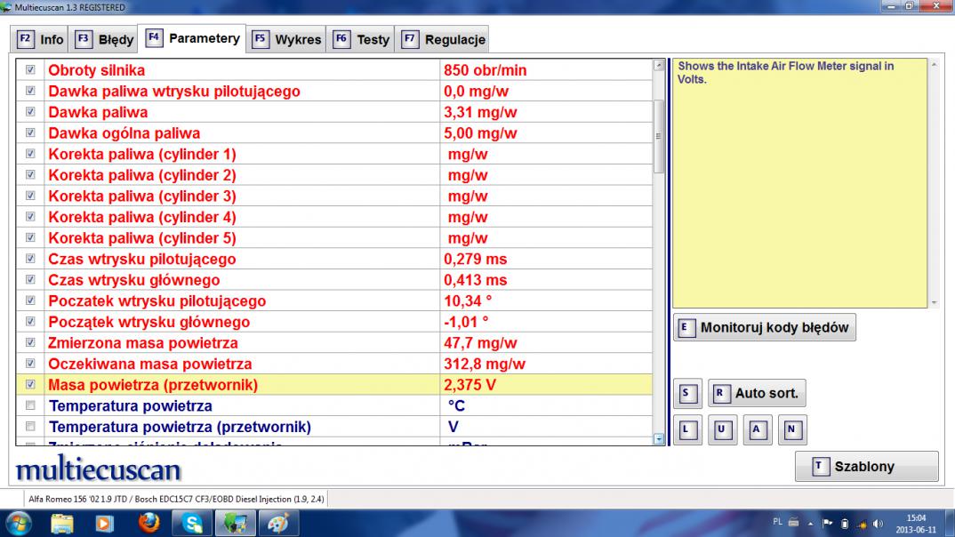 z tego co tutaj widać to masy powietrza się nie zgadzają, mierzona jest za niska, być może popsuty przepływomierz.