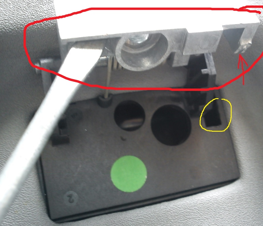 Odświeżam. Potrzebuje ten element klamki zaznaczony na czerwono ponieważ "popychacz" ułamał się i za cholere nie mogę tego skleić aby sie trzymało. Jak nie śrubka od plastikowej klamki tak teraz ten popychacz.. Wykorzystam zdjecie DonARello. http://www.forum.alfaholicy.org/atta...d=145146&stc=1