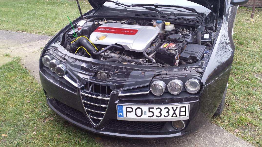 miedzy akumulaytorem a silnikiem idzie rura. W 2.4 jtdm jest alu a w 1.9 plastikowa i jest przykręcana do klapy gaszącej. a zaraz za nią wejście do kolektora dolotwego.