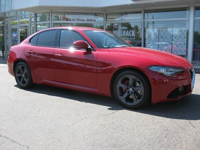 Giulia QV rosso na ulicy/parkingu w Holandii