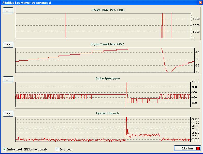 -Obroty silnika spadły z 880 na 760/800. Silnik jakoś inaczej zaczął chodzić, stał się anemiczny, nie reaguje na gazowanie, jest spowolniony. Po lekkim gazowaniu i puszczeniu pedału gazu, silnik lekko się trzęsie, po puszczeniu gazu obroty spadały do 600, przechodził pomału przez 760 i zatrzymywał się na 800. Czasy wtrysków analogicznie zaczynały się od 2.9 przy 760obr/min i kończyły na 3.0/3.1ms przy 800obr/min.