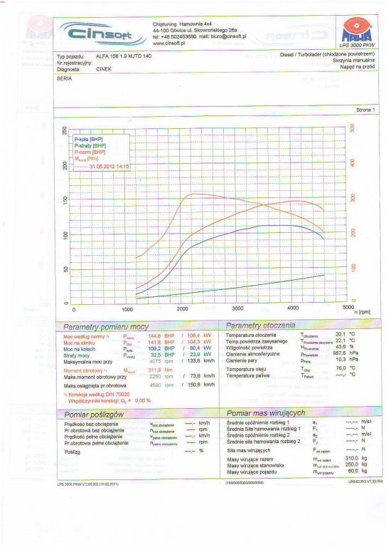 Po wizycie u Cinka moja Alfa zaczęła fajnie jechać :D na mokrej nawierzchni ciężko ruszyć. Gorąco polecam cinsoft, szczerze to chciałbym żeby wszystkie moje pieniądze trafiały to takich profesjonalistów, oto co udało się wyciągnąć :D
