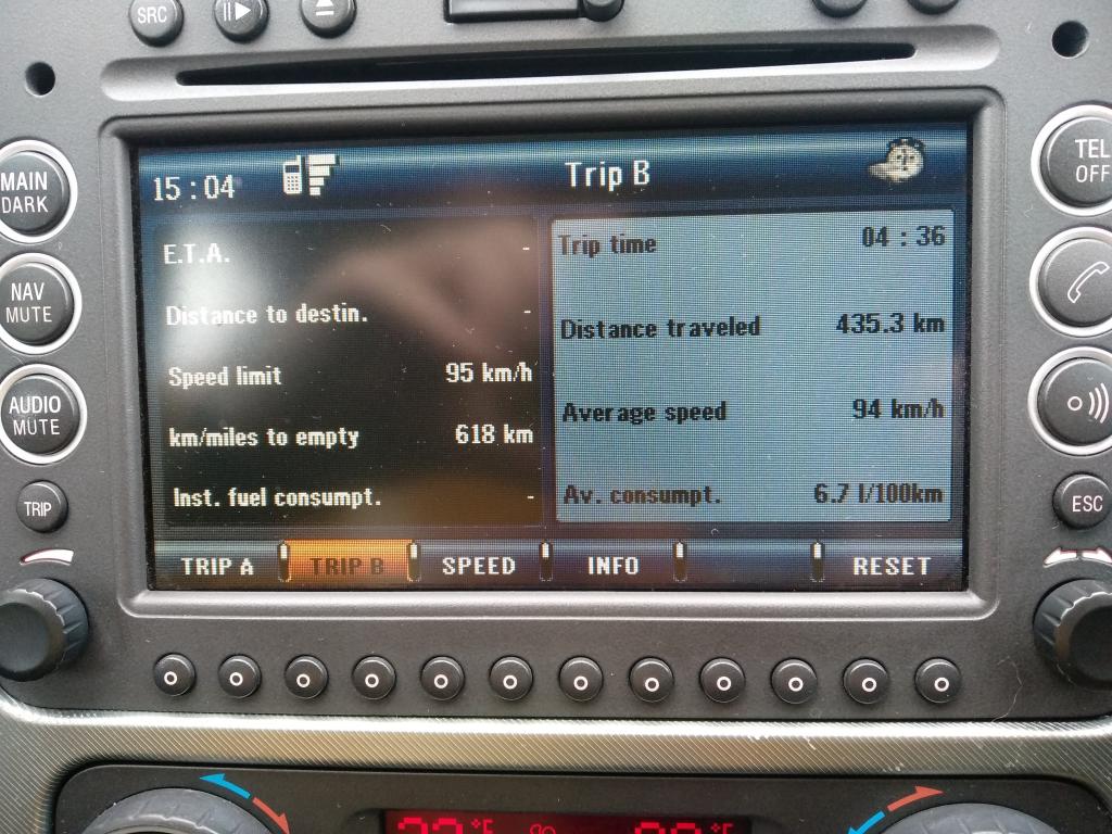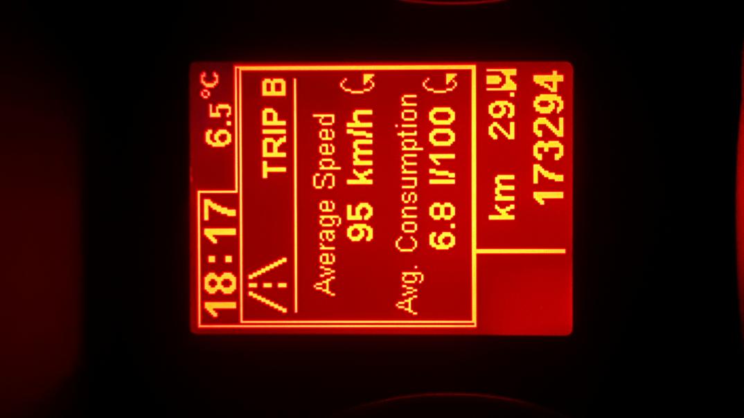 Trasa na Hel spod Grójca, czyli w większości autostrada (średnio 140-150km/h) i trochę kręcenia się po Sopocie. Średnia 6.8 z komputera z niecałych 1120km. Silnik 1.9 120 koni, cztery osoby na pokładzie plus lekki bagaż. Według kalkulatora spalania 6.84l/100, więc pokazuje w miarę sensownie.