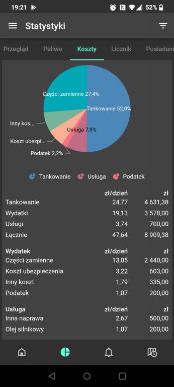 Moje auto, tam mam wszystkie wydatki związane z samochodem, np takie wykresy