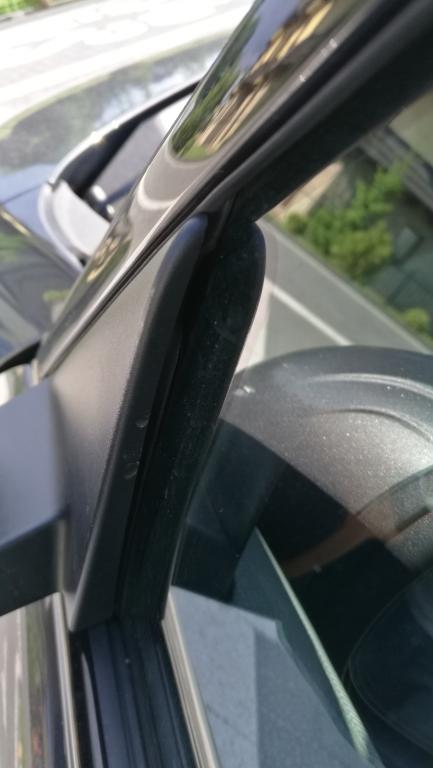 Niestety okazało się, że uszczelka przy lusterku jest zawinięta.