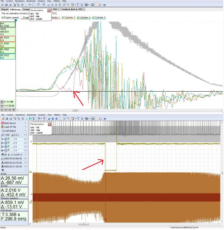 Korekta i tak chyba nie zmieni dolnego zakresu pracy, który dla czujnika wałka powinien wynosić 0V. Na wykresie wychodzi na wartości ujemne, co nie jest zjawiskiem prawidłowym dla czujnika wałka.