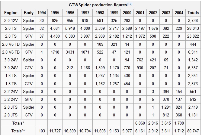 Niżej tabela, która wyjaśnia dla czego na rynku jest tak mało wersji V6 Alfy GTV i Spider. Jak coś się pojawia to radzę kupować. a nie wybrzydzać.