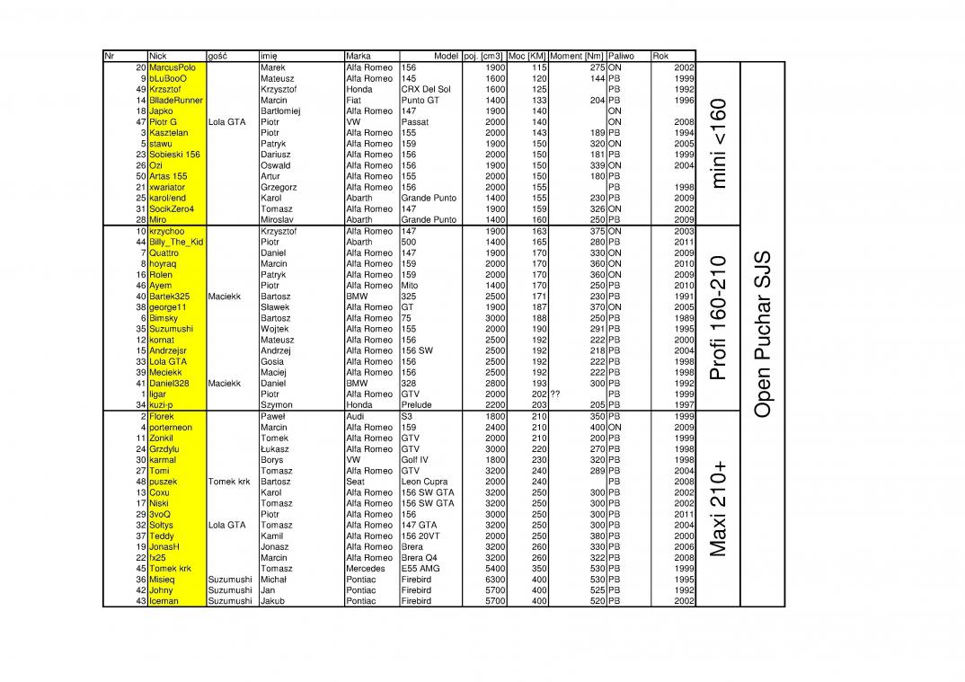 niee wiem czemu ale nie chce się tu lista wrzucić. Zapraszam zatem na FB aby poznać podział na klasy