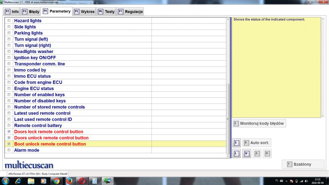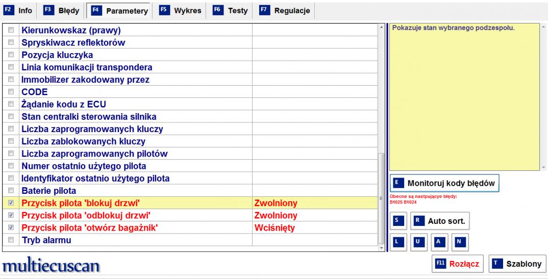Łączycie się z body computer marelli i tam w parametrach macie podgląd przycisków.