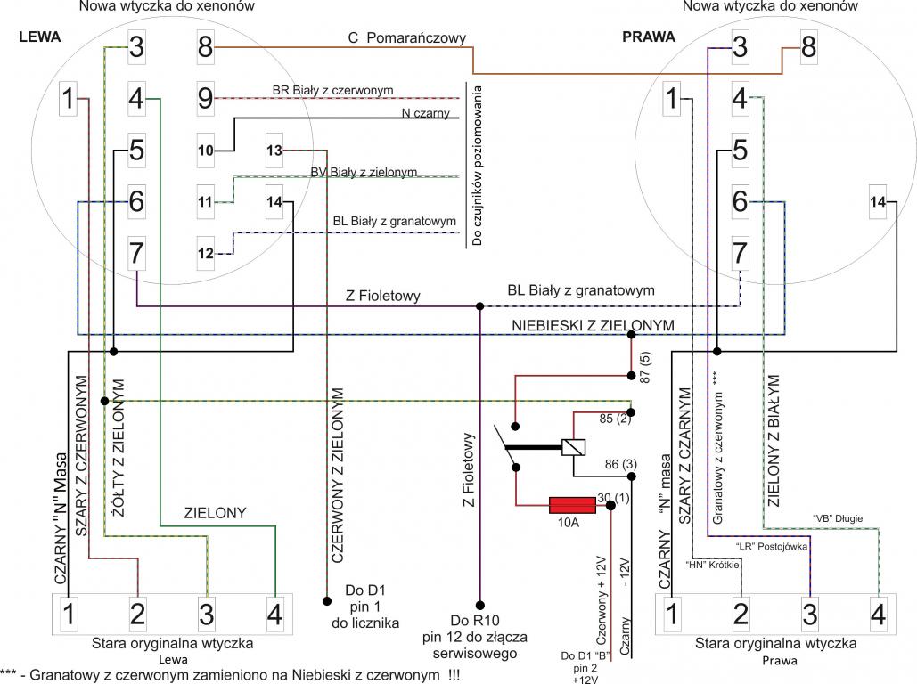 Dzisiaj będę miał drugą przetwornicę. Pin 7 tak jak na schemacie, łączy dwa reflektory i wychodzi na pin 12 złącza diagnostycznego.