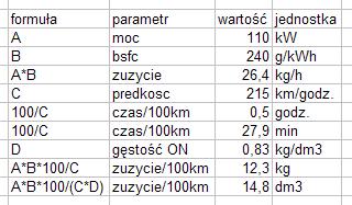 Po drugie robiłem kiedyś w Excelu arkusz, żeby policzyć krzywą spalania względem prędkości jazdy dla optymalnego biegu i wychodziło podobnie (też diesel). Uprzedzając Twoje wątplwiości, 6 litrów/70km przy prędkości 215 km/h jest nierealne, wychodzi ok. 8,6 litra, a realnie na prostej drodze bez huraganu powinno być 15 +/- 1(2) litry, poniżej wyliczenie dla geeków: