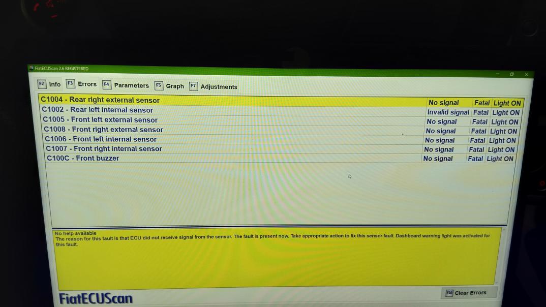U mnie był problem z tylnym czujnikiem, okazało się, że wiązka była przerwana. Jak włączysz czujniki parkowania to musisz nasłuchać z bliska czy czujnik cyka, jeśli nie to albo nie sprawny albo tak jak u mnie przerwana wiązka.