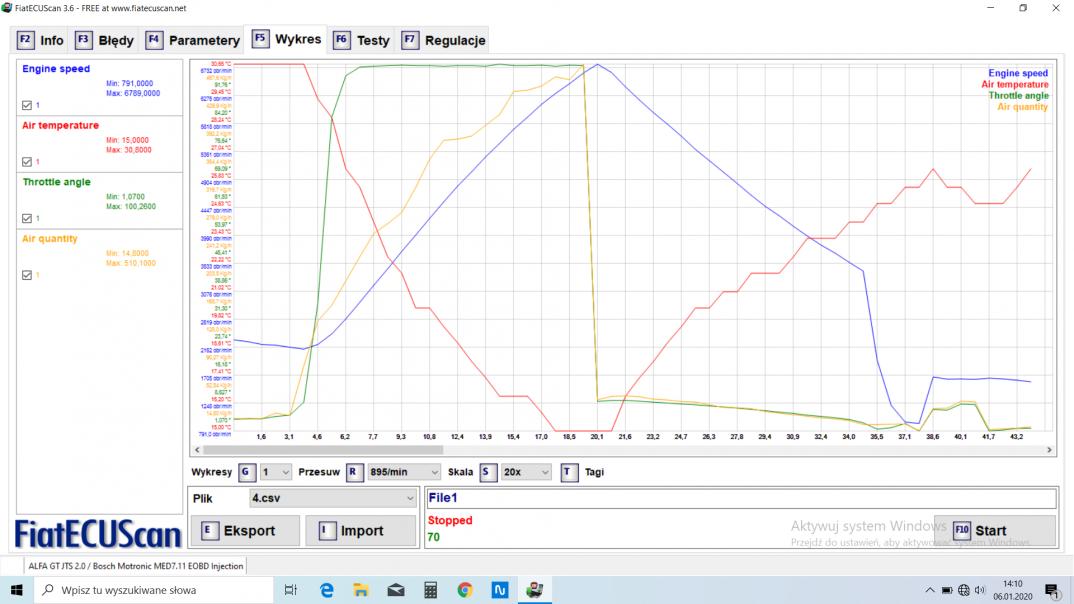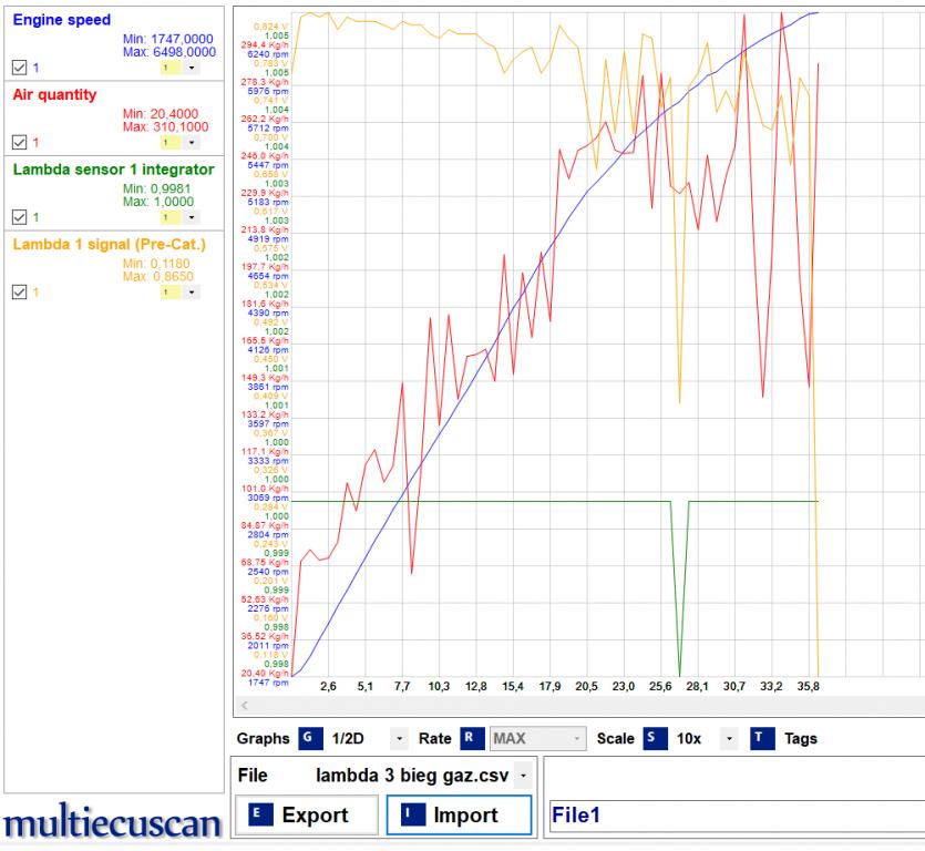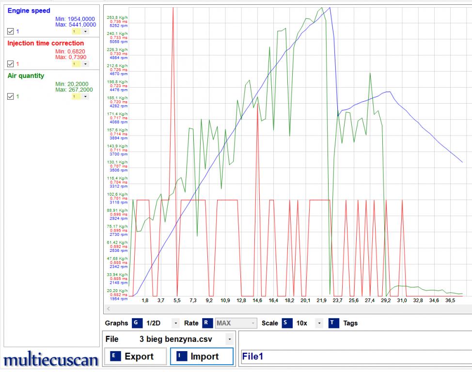 4ty bieg, gaz w podłodze od ok 1500 obrotów do ok 4100. EGR zaślepiony i wyrzucony z programu. Alfa 156 JTD 16V 150 KM.