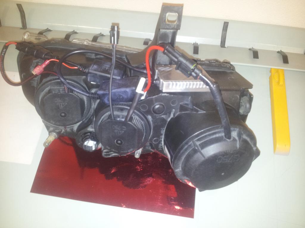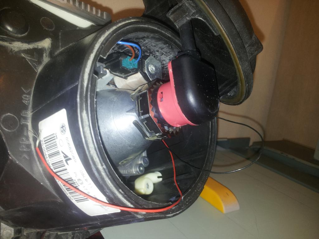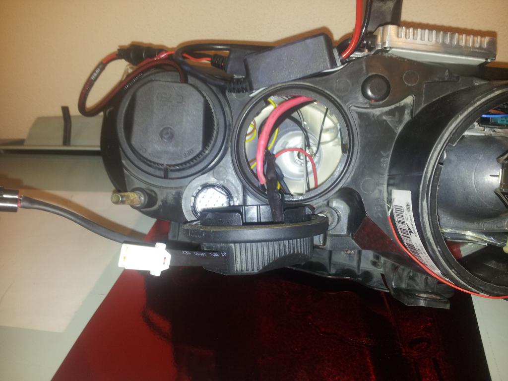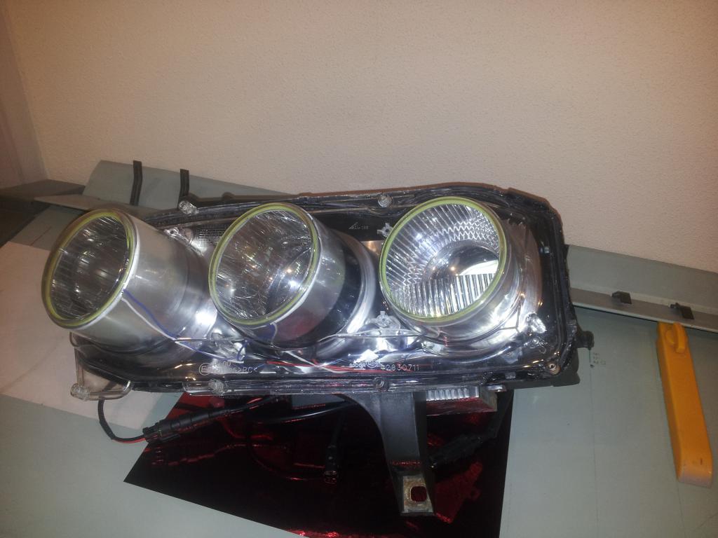 Zdjęcia pokazują całą lampę, homologacje na drl i bixenon, bixenon i kable do devil eye. Na ostatnim widać wiązkę od LEDów oraz podłączenie modułu sterowania LEDami. Na dole lampy to oczywiście nowe HIDy