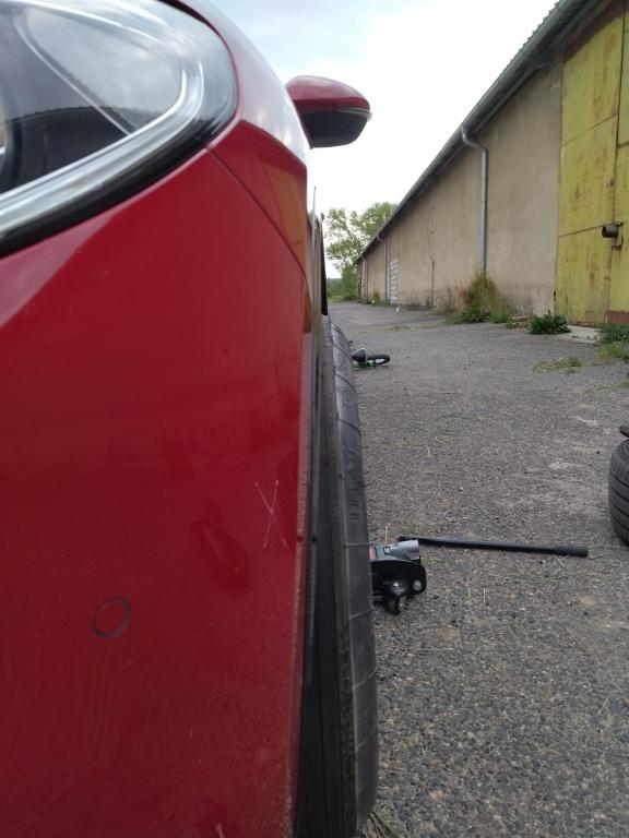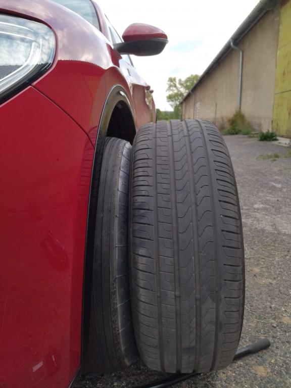 P.S.1. Różnica w wysokości kół postawionych obok siebie wynika też z tego, że samochód jest na najeździe do garażu i siłą rzeczy oryginalne koło jest wyżej.