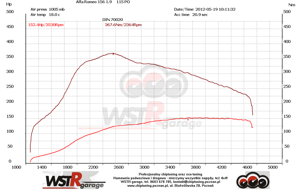 U mnie też hamownia okazała się bardzo przydatna. Z jednej strony jestem bardzo zadowolony, bo silnik trzyma parametry ponad normę, tzn. 154 KM oraz 324 Nm. Niestety, widać że turbo za późno wstaje, także będzie trzeba to zdiagnozować :/