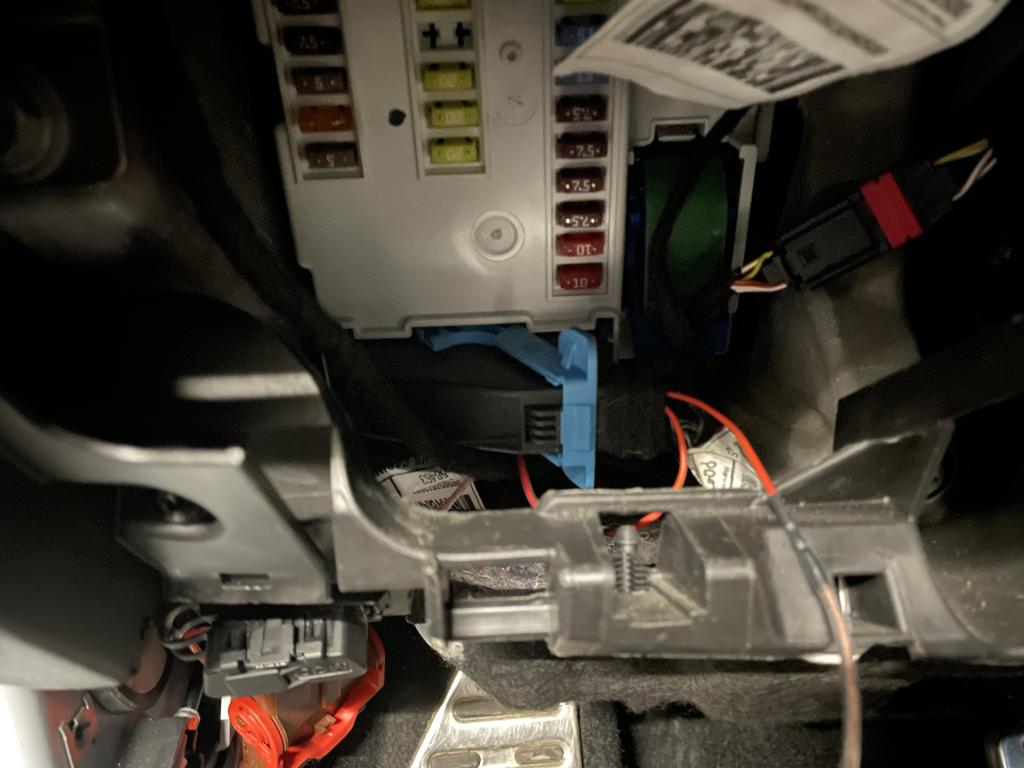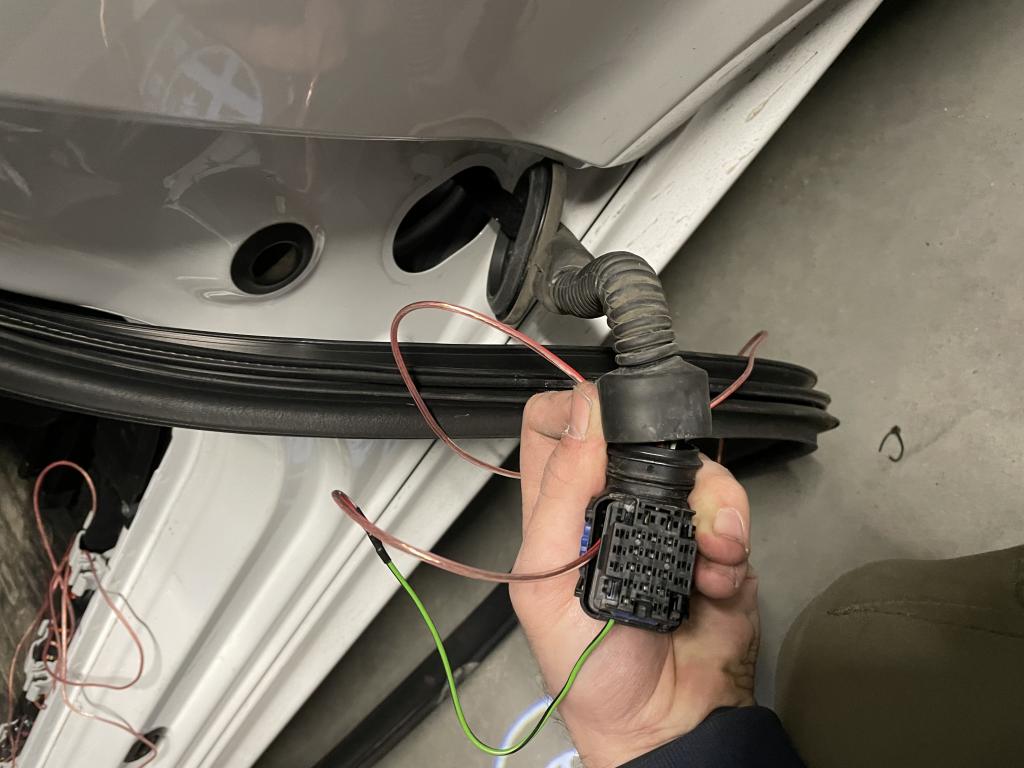 Nauczyłem się rozbrajać i zbroić wszystkie wtyczki potrzebne w procesie. Instalację zacząłem od wtyczki w skrzynce bezpieczników (tej szerokiej na dole skrzynki) - pin 29 z którego rozchodzą się dwa kable 12v do tylnych drzwi