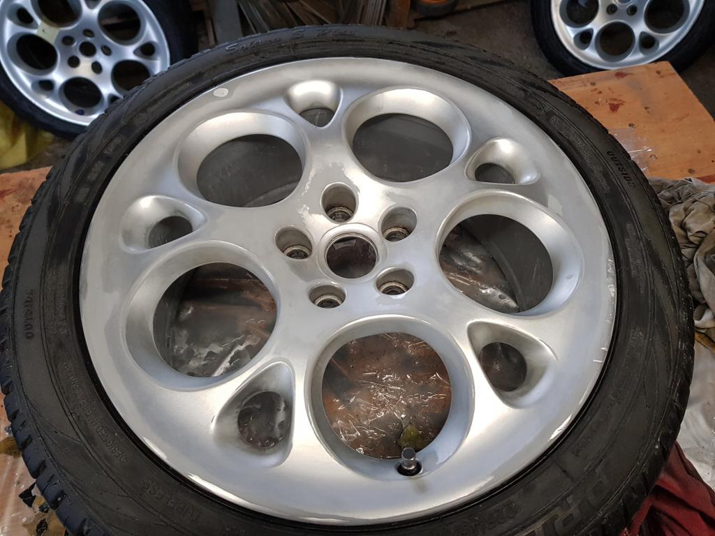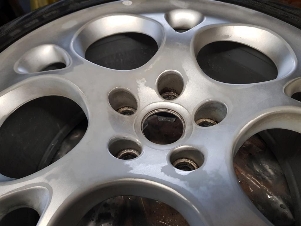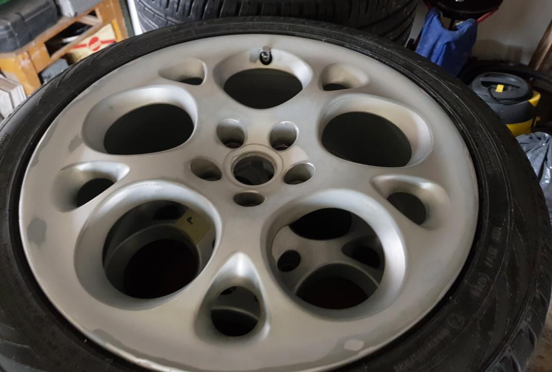 Ostatnio wpadły mi w ręce 17-tki MOMO w dość opłakanym stanie lakieru mimo 4 lat od daty zakupu i użytkowania tylko w lecie. Ten model niestety ma problemy z lakierem bezbarwnym, który schodzi płatami z warstwy czarnej bazy a ramiona utleniają się pod nim w bardzo szybkim tempie. Renowację zacząłem od usunięcia tego klaru przy pomocy żelu aktywnego z Motip: https://www.google.pl/search?q=zmywa...IFQXKKj0ohM%3A . Po około minucie działania wystarczyło zmyć wszystko pod ciśnieniem i pozostało gołe aluminium oraz czarny lakier z dużą ilością plam. Plamy zostały częściowo usunięte przy pomocy rozpuszczalnika nitro a ramiona wypolerowałem pastą ścierną FORCH HEAVY P335. Wszystkie wżery zniknęły a aluminium uzyskało piękną głębię i połysk z zachowaniem struktury nadanej przez fabrykę. Dla uzyskania ładnej czerni pomalowałem wnęki czarnym matem (http://www.lakiereo.pl/forch-wysokoj...6-id-3305.aspx) a całość została pokryta profesjonalnym lakierem bezbarwnym z utwardzaczem w spray'u. Koszt materiałów około 80 zł nie licząc pasty polerskiej. Czas poświęcony na renowację około 4 godziny. Efekt moim zdaniem zadowalający.