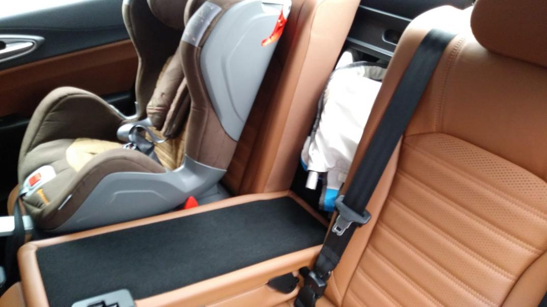 Co do uzywania Giulii jako auta dla rodziny, po niecalych 3tyg posiadania Veloce (z lukami na 3 wizyty w serwisie) niewiele jeszcze przetestwoalem. dzisiaj zalozylem bagaznik na dach i wrzucilem do bagaznika przyczepke rowerowa Qerido - niestety trzeba polozyc srodkowa czesc oparcia a przyczepke wlozyc na ukos wiec niezbyt wiele zostaje przestrzeni w bagazniku. wyglada to tak: