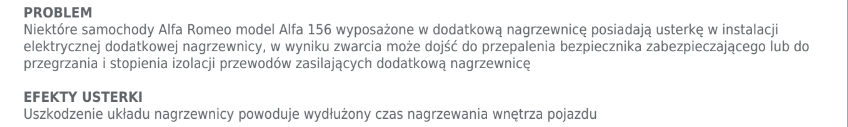 Jedyna akcja jakościowa jaka była na 156 to wada w instalacji nagrzewnicy. Przynajmniej dla modeli od 2001 roku