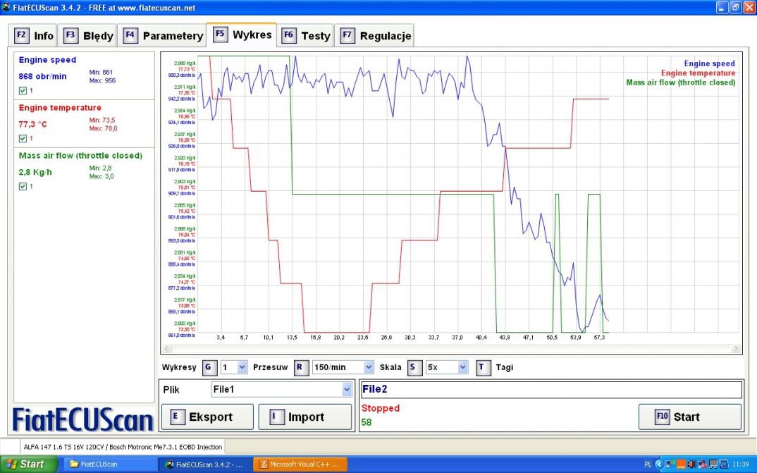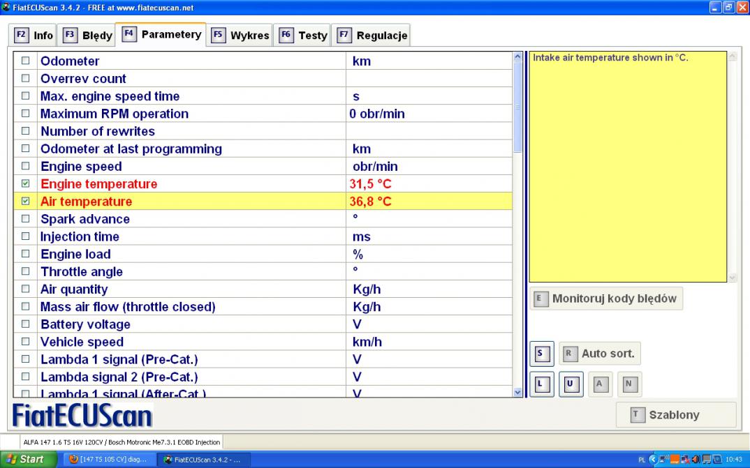 w 147 TS silnik bierze temperaturę powietrza z czujnika termistorowego , który sie znajduje w korpiusie przepływomierza.... przepływomierz jest dość blisko gorącego silnika i czasami ta temperatura wynosi prawie 70 st C, powoduje to że przypływomierz czasami ulega awarii. drugii czujnik jest na termostacie i ECu wg niego mierzy temperaturę wody wychodzacej z silnika lub z chlodnicy w zależności od otwartego kanału.....------------------------------------------------------------------------------------------------ tam gdzie zainstalowałes FESa tam masz wszystkie logi i pliki wynikowe, na ikonce FES a daj prawym klawisze myszy i zobacz ścięzke do uruchomienia programu, to jest katalog domowy FESa ..... log to plik *.txt, wynik z wykresu graficznego to plik *.csv. zrzuty są trudne do analizy...... log najlepiej zrobic tak jak masz pokazany ekran z tymi temperaturami, idziemy na koniec przesuwając suwak do konca, potem litera A, czekamy aż odczyta i pojawia sie wyniki na końcu a potem litera N...... i już mamy log *.txt CSV to robimy wybierając parametry do odczytu, FEs sam automatycznie zrobi te pliki oznakowane datą....... poszukaj na notebooku tych starych plików i załącz na forum....... nie wybieraj parametrów wiecej niz 4 - 6 , FEs z większa liczbą nie daje rady.