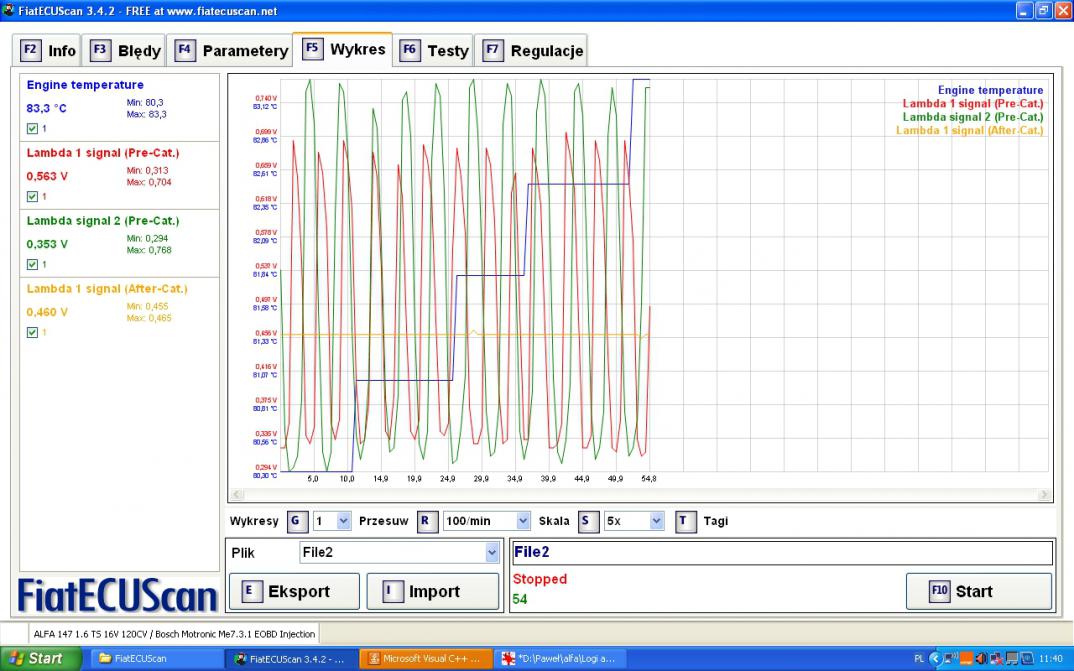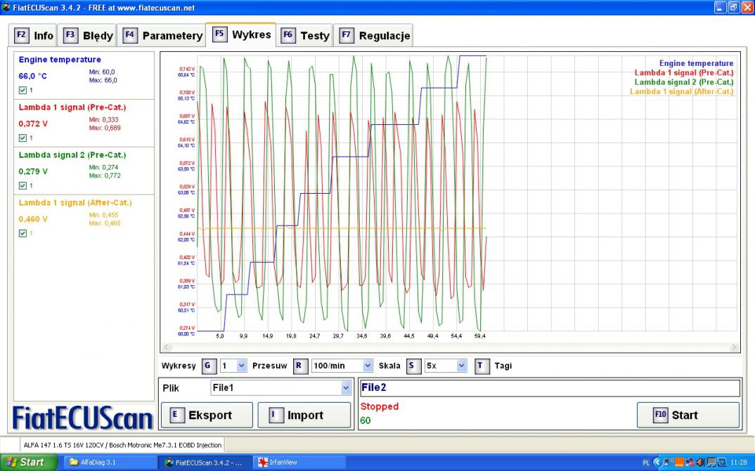 - poniżej masz dwa wykresy z sondami, pierwszy nie dogrzany silnik i drugi silnik z normalna tempratura pracy.