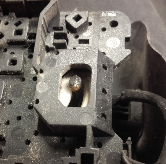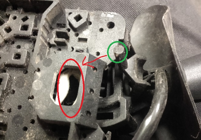 Część od kierunków nie ma tylko jedną dużą sprężynkę od elementu ustalającego między trybami. Ale można tą część żle złożyć. Musisz to jeszcze raz rozebrać i ponownie złożyć uważając żeby dobrze trafić elementem na zdjęciu w tą prowadniczkę.