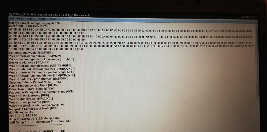 Witam. Temat nie związany z Alfa ale z MES-em. Chodzi o Jeep Cherokee Kl 3.2 z 2016r USA. Zrobiłem Proxi i światła udało się zmienić Proxi poszło są już po naszemu. Ale jak próbowałem zmienić region to nie poszło. Jest tylko do wyboru 2.0 nie ma 3.2 może ktoś robił coś podobnego?