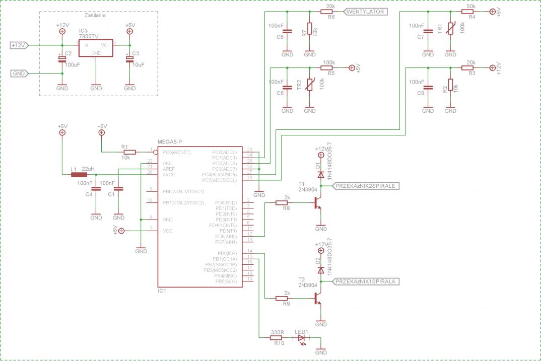Czy termistory są wpięte w układ równolegle i czy zaznaczone na schemacie Przekaźnik2SPIRALE jest to oznaczenie wyjścia - równoległe, a powyżej zaznaczenie +12V jest to zasilanie?