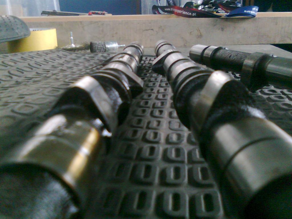 Przy okazji porządków znalazłem przyczynę utraty mocy TS'ów:) Po prawej wałek z pewnym przebiegiem 112kkm, po lewej - około 270-300kkm, po pomiarze wyszło mi 2mm różnicy na krzywce... Dodatkowo są duże różnice pomiędzy krzywkami jednego wałka, porównałem ich chyba ze 6 sztuk i na wszystkich sytuacja wygląda podobnie. Natchnęła mnie do tego jazda z silnikiem który mam obecnie w aucie i sprawia wrażenie duuużo silniejszego niż poprzedni choć z tamtym wszystko jest w porządku - muszę pomierzyć i porównać ich wałki i sprawdzić czy to jest powód.