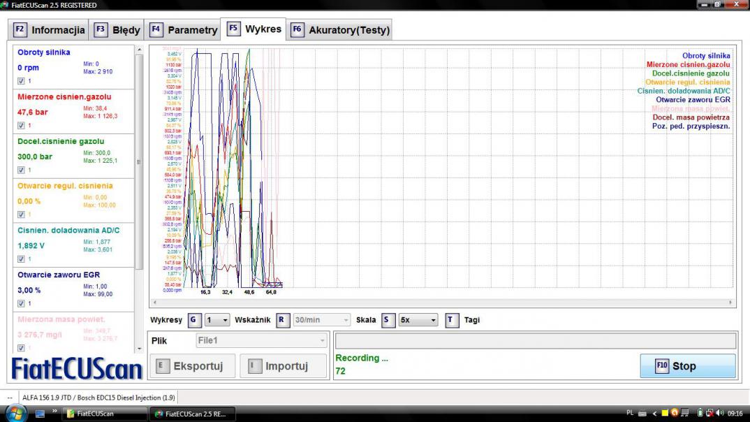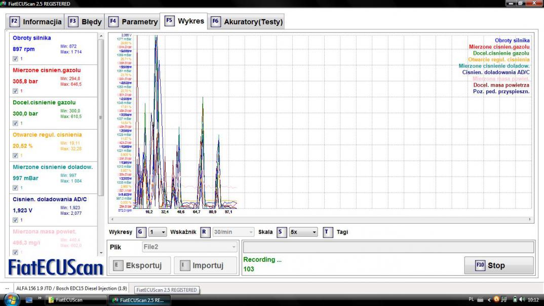 Oczywiście to napięcie 5V ma być przy WŁĄCZONYM zapłonie. Silnik może nie pracować byle było zasilanie.