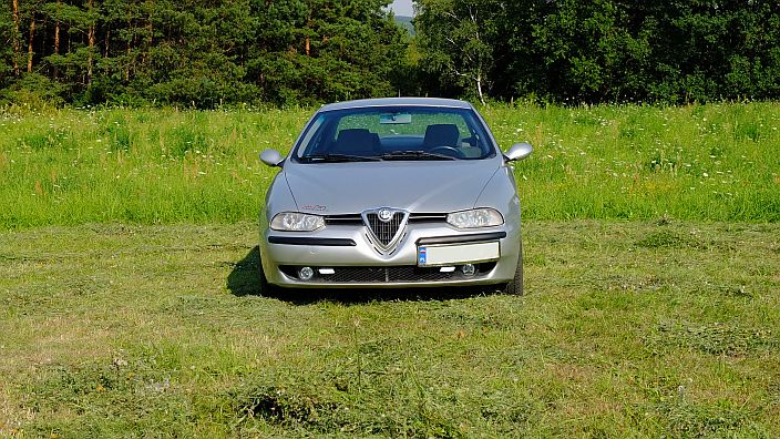 Postanowiłem zamontować małe światła do jazdy dziennej w miejscu, gdzie moim zdaniem najmniej zaburzają stylistykę alfy, czyli między halogenami. Myślę, że wygląda to dość znośnie, gdyż nie bije po oczach i nie drażni. Światła zamontowałem z kilku powodów: