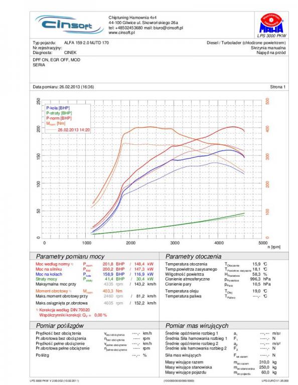 No właśnie w związku z brakiem dowodów w postaci wykresów ośmielę się stwierdzić, że w przypadku AR 159 te wartości są nierealne. Widziałem wykres Fiata Bravo z tym silnikiem 230/450 ale Alfy jak dotąd nie ma.