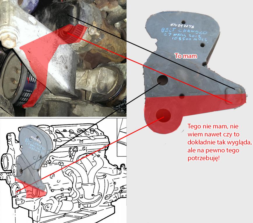 Po wejściu na kanał zobaczyłem, że brakuje mi dolnej części osłony paska rozrządu. Element górny mam (nawet jeden na zapas) i na Allegro też go znajduję, niestety nikt ze sprzedawców nie oferuje dolnej części osłony. Ba - nawet nie wiem jak ona dokładnie wygląda i czy w ogóle można ją kupić? Jako, że skutki zniszczenia / zerwania paska będą bardzo opłakane uparłem się tą osłonę zapewnić i tym samym zabezpieczyć pasek przed błotem, śniegiem, wodą i innym brudem z jezdni. Zatem: