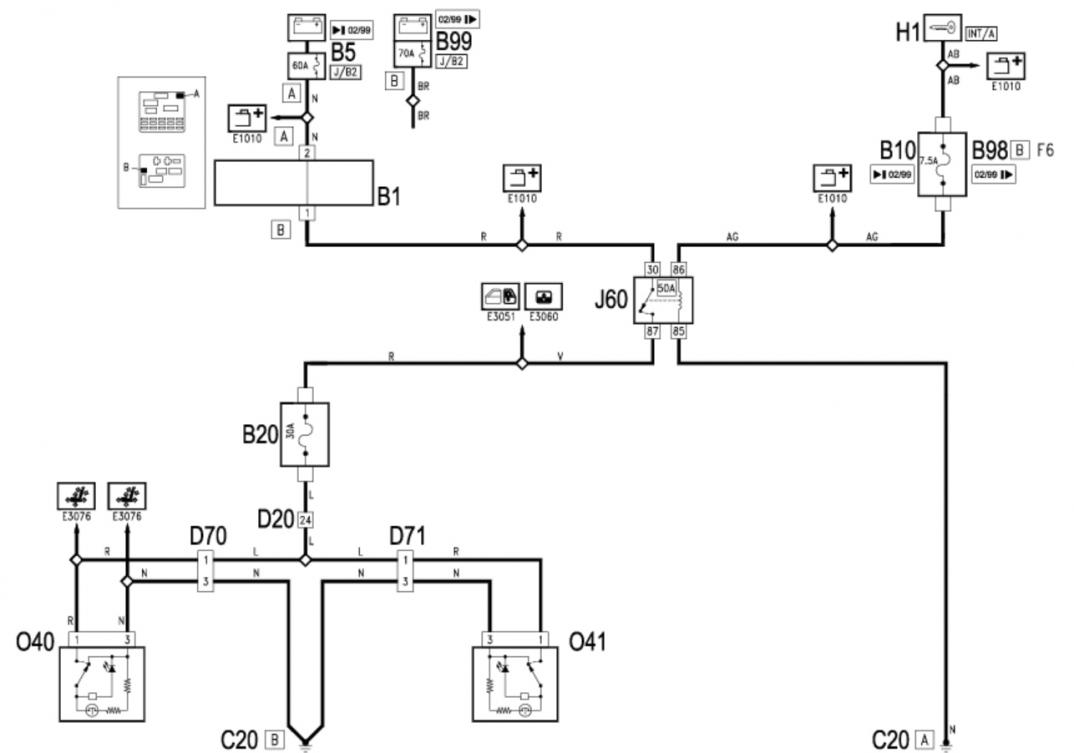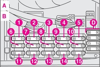 Bezpiecznik numer 8 odpowiedzialny za ogrzewanie foteli - 30A. Sprawdzam u siebie i ni hu hu mi się tam nie zgadza - w pierwszym rządku nie ma 6 bezpieczników tylko 3-4, w drugim w miejscu numer 8 siedzi jakiś 7,5A, ogólnie żadne wartości natężenia prądu nie pokrywają się z tym co jest w instrukcji ;/ Przekaźnik B od foteli (rys.2)