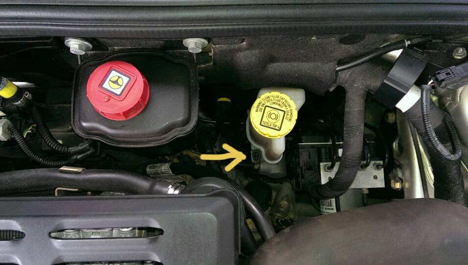 Na zbiorniczku masz skalę, poziom płynu powinien być na max. Koniecznie też znajdź i podłącz wtyczkę, bez niej nie dostaniesz ostrzeżenia na zegarach, gdy poziom płynu hamulcowego spadnie poniżej minimum.