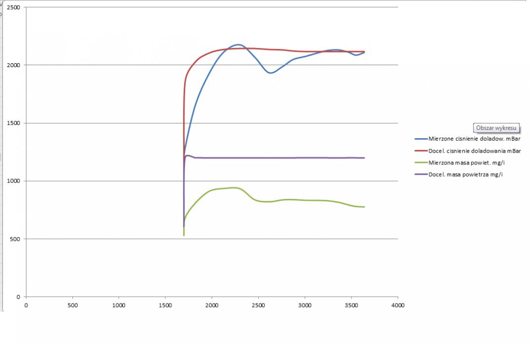 To jest wykres z Twoich logów. Widać, że spada dramatycznie ciśnienie doładowania, logiczne więc jest, że spada ilość powietrza.
