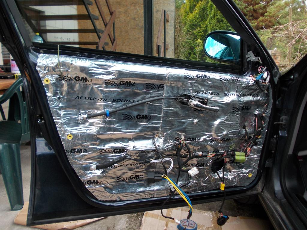Drzwi wygłuszone matą butylową 2,5mm (coś w rodzaju STP silver), a boczek pianką kauczukową.