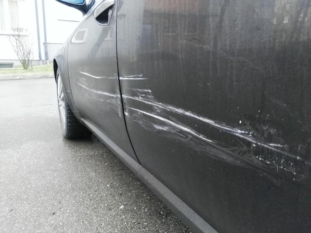 Spotkała mnie dziś przykra niespodzianka po powrocie ze sklepu, przerysowany bok mojej Alfy. Na szczęście sprawca w Oplu Vectra B na mnie czekał i spisaliśmy oświadczenie o jego winie. Sprawa poszła też dziś do ubezpieczalni. Byłem u lakiernika i zalecił mi wymianę drzwi z powodu wgnieceń i unikania szpachlowania.