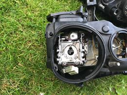 W lampach stopiony został uchwyt, urwane mocowanie przetwornicy xenon, stopione szkło, otwór został na tyle podgrzany, że zrobiło się z niego jajko, wymienione elementy najprawdopodobniej nie pasują do tych lamp, ponieważ odbłyśnik xenon wystaje poza obudowę.