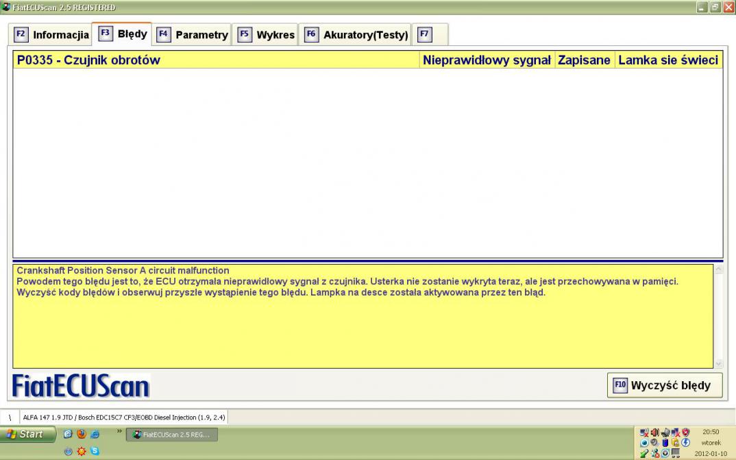 Piszę z pracy dlatego też proszę o odpowiedź bo jestem nieźle zdygany co się stało... W drodze do pracy podczas ruszania silnik zgasł. Przy próbie odpalenia świecił się check i auto było "martwe". Zepchnąlem z kolegą alfę na pobocze i odpiąłem aku na ok 20 sek. Nie pomogło niestety...próba odpalenia pali się check i mrugają kilometry. Odpięcie aku na 3-4 minuty... włączam znowu zapłon i licznik już nie miga, ale check gaśnie po to aby za chwilę się zapalić. Auto troszeczkę dłużej niż zwykle ale odpala i jedzie. Podczas krótkiej już drogi do pracy [ostatnie 2 km] miałem wrażenie jakby jadąc ze stałą prędkością przy niecałym 2k obrotów na trójcę silnik raz szarpnął...ale już sam nie jestem pewny czy nie jestem już przewrażliwiony. Czy to kroi coś poważnego ? :( wrócę ok 20 do domu to swoimi słabymi umiejętnościami podepnę lapka pod FES-a i spróbuję coś zczytać... Auto do tej pory jeździło normalnie. Jedyne co się zmieniło to to że kupiłem kasetowy adapter do kaseciaka i właśnie w tej podróży pierwszy raz go testowałem. Możliwe jest to, że w radiu jest coś uszkodzone czy ma zwarcie w kaseciaku i coś takiego wyrzuca? tak wiem w sam w to wątpię....proszę o pomoc :(