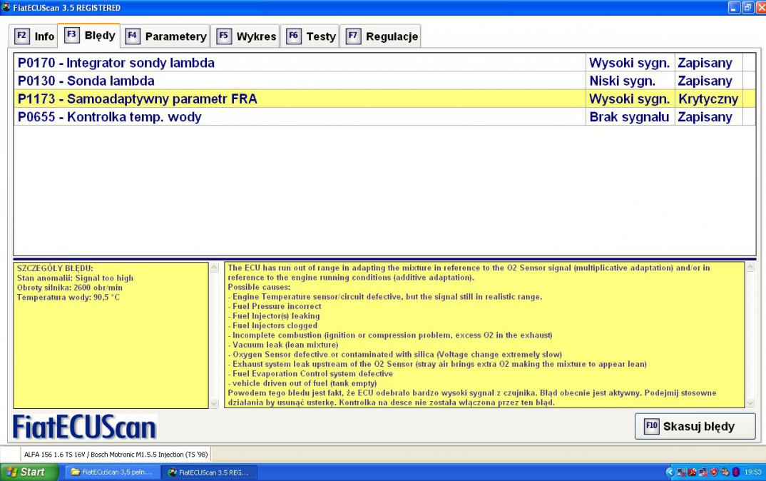 Zrobiłem diagnoze Programem fiatecuscan i miałem takie błędy: P0170,P0130,P1173,P0655