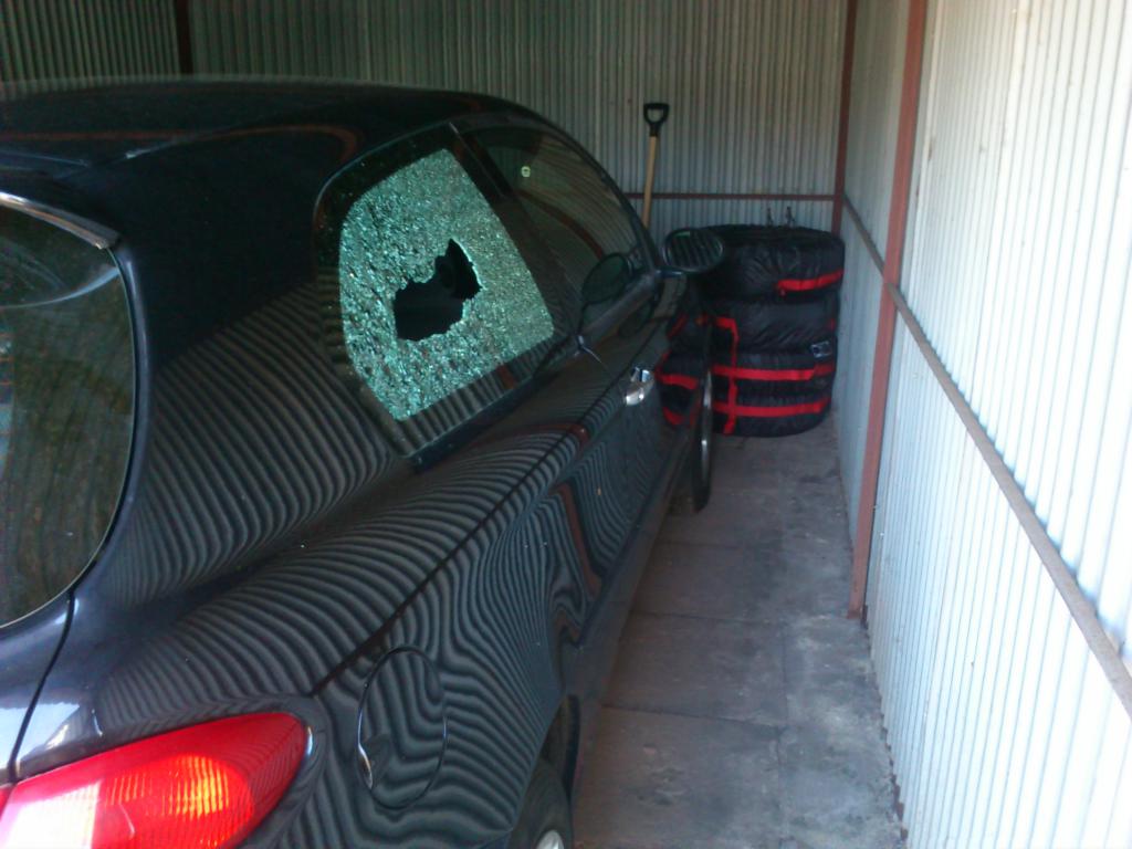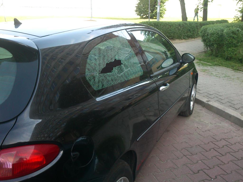 Tutaj zdj z konfrontacji kamyka wyrzuconego przez kosiarke vs moja tylna szyba w alfie romeo...