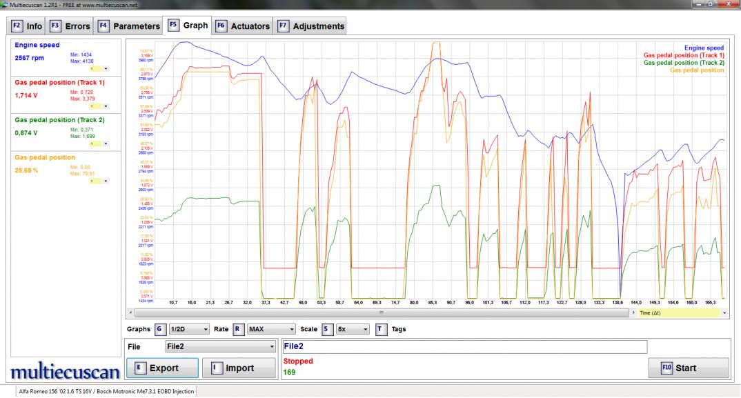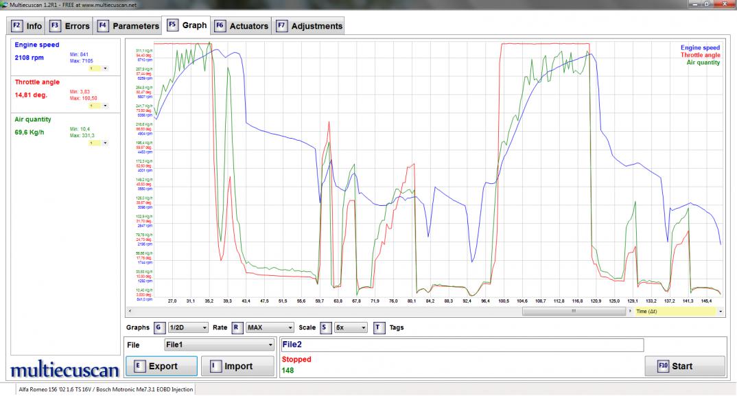 Hmmm, dziwne ze przy 6800 rpm nagle przeplyw leci w dol... Wartosci sa poprawne chyba, z tym ze cos sie z nia dzieje. Sprawdz jeszcze napiecia jakie ma. Nie masz gdzies nieszczelnosci w dolocie? bo widze ze pojawia sie to w momencie wysokich rpm, wtedy kiedy robi sie duze podcisnienie