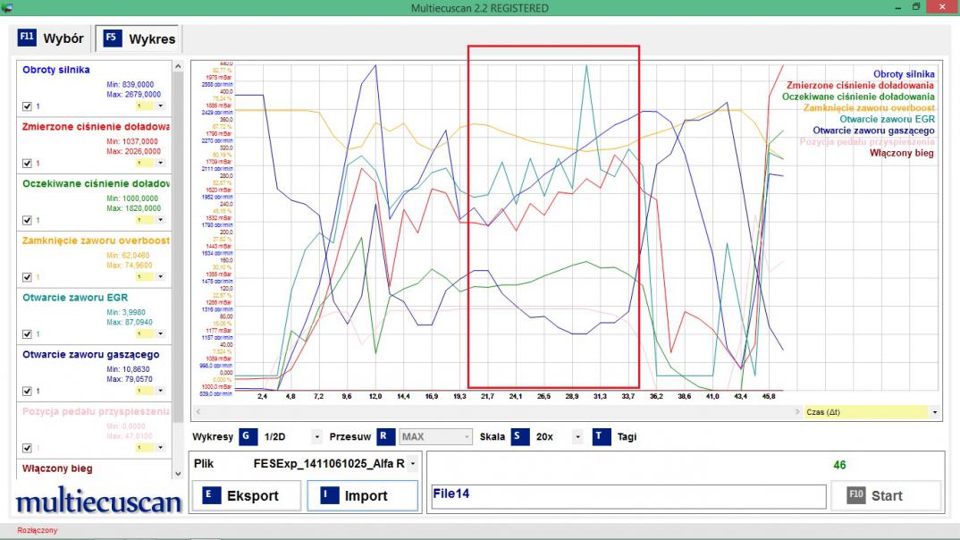 panowie też u siebie mam takie poszarpywania i skoki ciśnienia, widać to w czerwonym prostokącie http://www.forum.alfaholicy.org/atta...d=149769&stc=1 i tu moje pytanie dlaczego przy stałych warunkach jazdy egr skacze do maksa i dlaczego mam taką dużą różnicę między ciśnieniem zmierzonym a oczekiwanym. dodam że mam zaślepkę włożoną z dziurkami.
