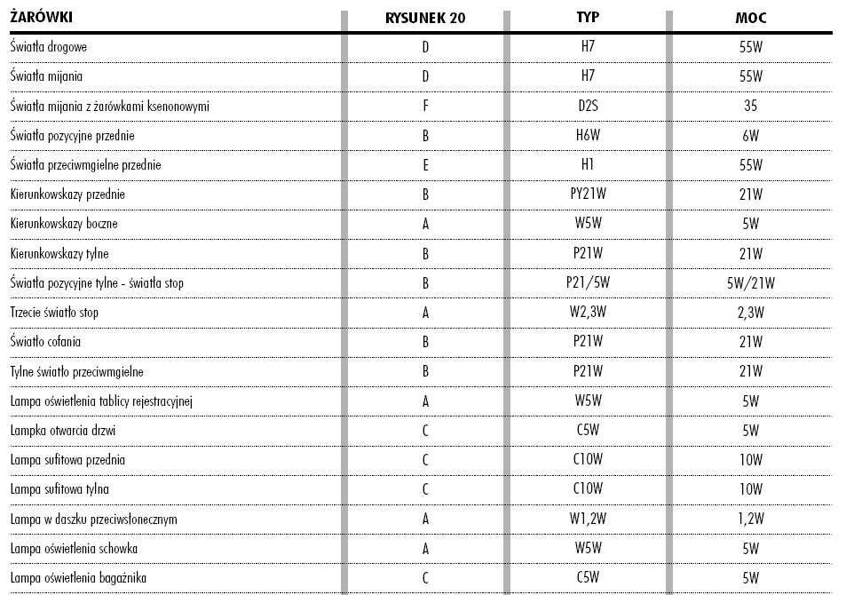 Witam chciał bym wymienić oświetlenie wnętrza,schowka tablicy postojówek bagażnika jakie żarówki są tam