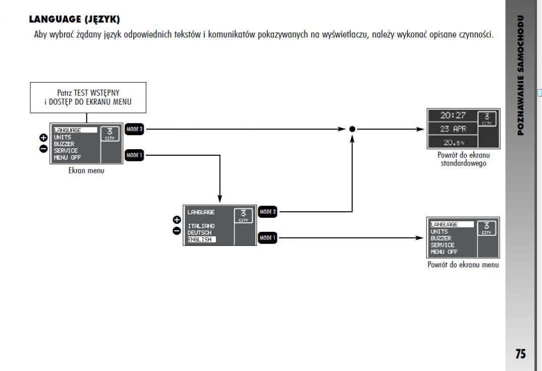 2. Jak zmienić język na wyświetlaczu (przy liczniku) .Mam ustawiony Niemiecki ???