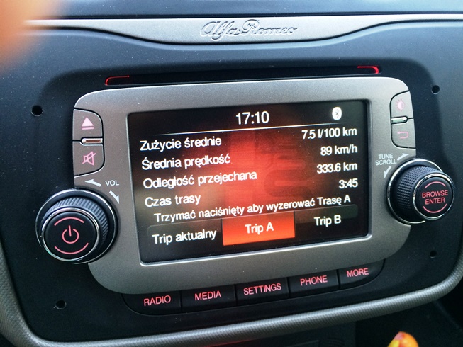 MiTo 155TB - A4 Kraków - Tarnów 140 km/h 8.0/100 ale np. potem na trasie 54km - 5.4L....