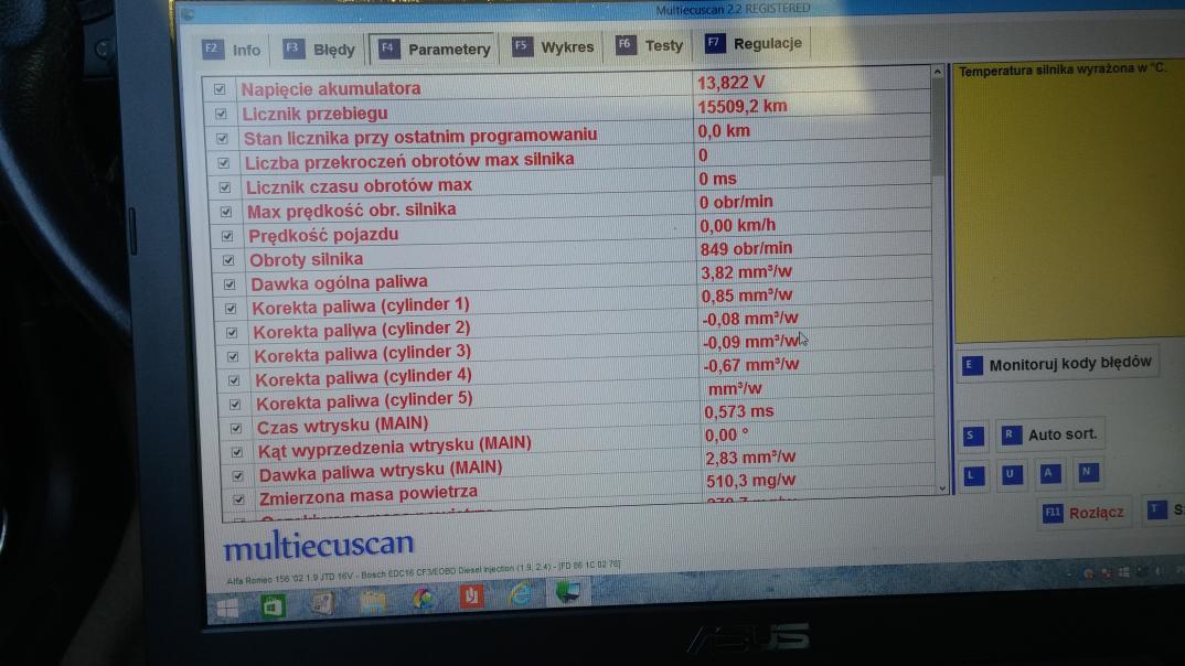 1.Nieszczęsna temperatura silnika, podczas jazdy temperatura dochodzi max.do 70 stopni, jadąc na trasie potrafi spaść nawet do ok 60 stopni, podczas dłuższego postoju temperatura spokojnie rośnie, doszło do 97 stopni i nie przestaje rosnąć, wentylator się nie załącza (na klimatyzacji pracuje), po ruszeniu temperatura szybko spada w ciągu 1 minuty spadła o 15 stopni. Sprawdzane na komputerze. Czujnik wymieniony. Obstawiam termostat.