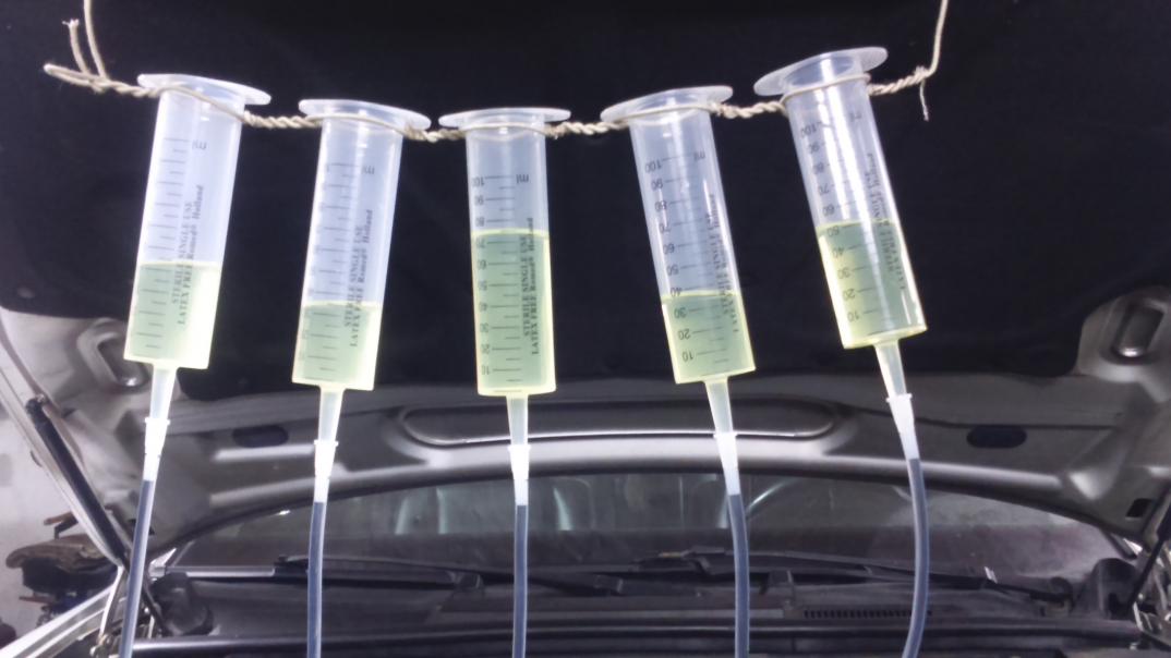 Dzisiaj zrobiłem próby przelewowe na moich wtryskach.Czytając tematy,gdzie były podane wartości po 4 minutach około 40-60ml.na wtrysk a u mnie zobaczyłem coś dziwnego.Otóż po 1min.15sec.musiałem auto zgasić,bo na 5 wtrysku prawie zabrakło mi skali w strzykawce 100ml.A dokładnie pokazało 85ml.,gdzie na pozostałych 4 około 10ml.Zaślepiłem ten 5 wtrysk i na 4 po 4min.pokazało praktycznie równe 38-40ml. na wtrysk.Mniemam,że z 5 coś się dzieje niedobrego i będę go wymieniał.